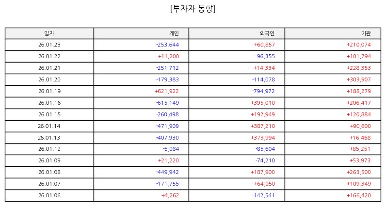현재 구간에서는 공격적인 접근보다는 관망 또는 분할 대응 전략이 상대적으로 안정적일 수 있다. 주가가 의미 있는 지지 구간을 형성하고 거래량이 다시 증가하는지 여부가 향후 흐름을 판단하는 중요한 기준이 될 것이다. 단기 하락 자체보다는 하락 이후 나타나는 수급 변화와 가격 반응을 면밀히 살펴보는 것이 중요하다.