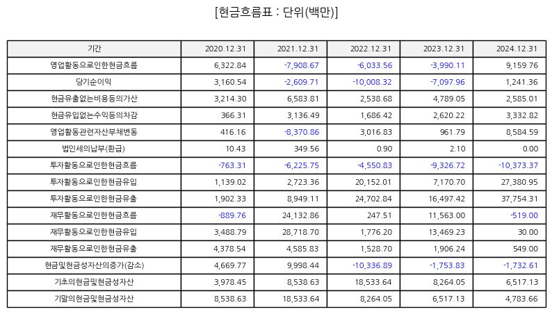 현금 흐름은 프로젝트 진행 상황에 따라 분기별로 차이가 발생한다
