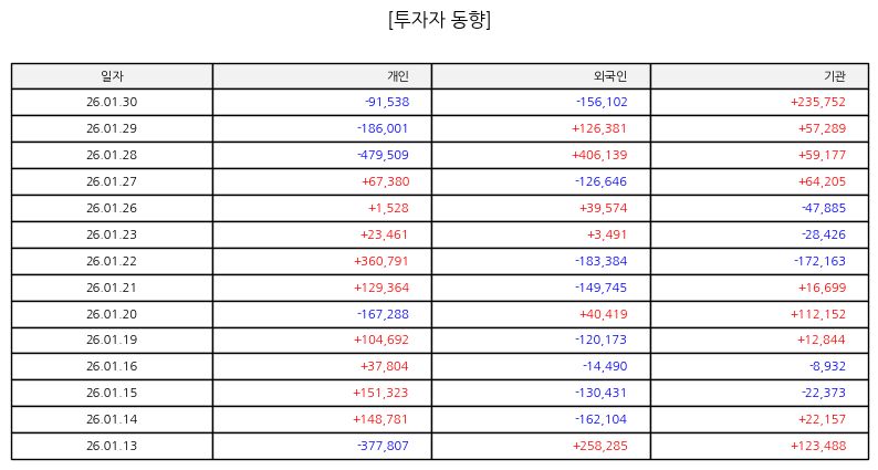 ▷ 최근 주가 흐름을 살펴보면 단기 급등 이후 조정과 재반등을 반복하는 모습이 나타나고 있다. 중기 이동 구간에서는 우상향 흐름을 유지하고 있으며 거래량이 동반되는 구간에서 매수 에너지가 확인되고 있다. 단기적으로는 변동성이 존재하지만 추세 자체는 아직 훼손되지 않은 모습이며 외국인 수급이 이어질 경우 추가적인 가격 재평가 구간이 열릴 가능성도 있다.