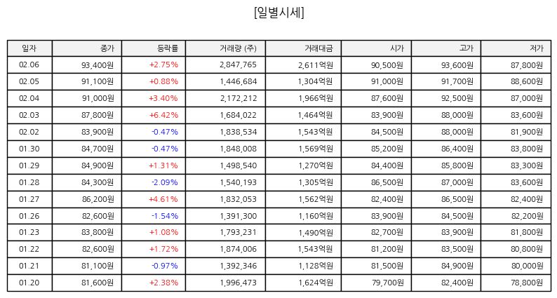 ▷ 오늘 주가는 장 초반 보합권에서 출발해 오전 중 소폭 조정을 받았으나 이후 매수세가 유입되며 점차 회복하는 모습을 보였다. 오후 들어서는 큰 변동 없이 안정적인 흐름을 유지했고 외국인 순매수 기조가 지지 요인으로 작용했다. 거래량은 평소 수준을 유지하며 과도한 투기적 움직임은 제한적이었다.