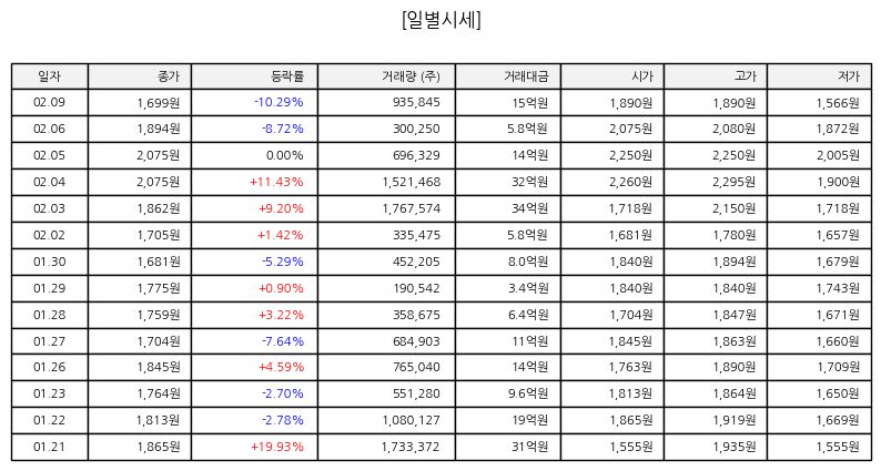 수급 측면에서 보면 개인 투자자의 거래 비중이 높은 종목 특성이 다시 한번 드러났다. 외부 환경이 불안해질 때 개인 중심의 매매는 단기 변동성을 키우는 요인이 될 수 있다. 당일 거래에서도 반등을 시도하는 구간마다 매물이 출회되며 상승 흐름이 이어지지 못했다.