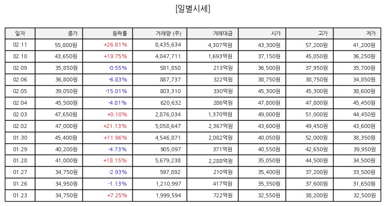 ▷ 금일 주가는 장 초반 갭 상승 이후 추가 매수세가 유입되며 상승폭을 확대하는 흐름을 보였다. 거래량은 최근 평균 대비 크게 증가한 수준으로 단기 수급 집중 현상이 나타났다. 이동평균선 기준으로는 단기선 돌파 시도가 이루어졌으며, 종가가 고가 부근에서 형성된다면 추세 전환 기대감이 커질 수 있다. 다만 단기 과열 구간 진입 여부와 차익 실현 매물 출회 가능성은 지속적으로 점검해야 할 부분이다.