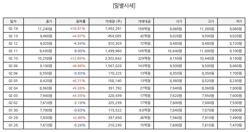▷ 최근 일봉 흐름을 보면 저점 구간에서 거래량이 점진적으로 증가하며 반등이 시도되는 모습이다. 이동평균선 부근에서 지지력을 확인하는 과정이 이어졌고, 오늘은 단기 매물대를 돌파하려는 시도가 나타났다. 단기적으로는 직전 고점 구간이 1차 저항선으로 작용할 가능성이 있으며, 거래량이 동반된 상승이 이어질 경우 추가 탄력도 기대해볼 수 있다. 반대로 상승 폭 대비 거래량이 감소한다면 단기 조정 가능성도 염두에 둘 필요가 있다.