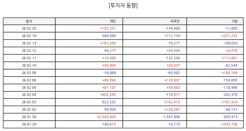 ▷ 오늘 주가는 장 초반 약세 출발 이후 외국인 순매수 전환과 함께 저점을 다지는 흐름을 보였다. 이동평균선 부근에서 지지력을 확인하는 모습이 나타났으며 거래량 증가가 동반되었다는 점이 특징이다. 단기적으로는 최근 형성된 박스권 상단 돌파 여부가 관건이며, 외국인 매수 지속 여부가 추가 상승의 변수로 작용할 전망이다. 반대로 매물 부담 구간에서는 변동성 확대 가능성도 염두에 둘 필요가 있다.