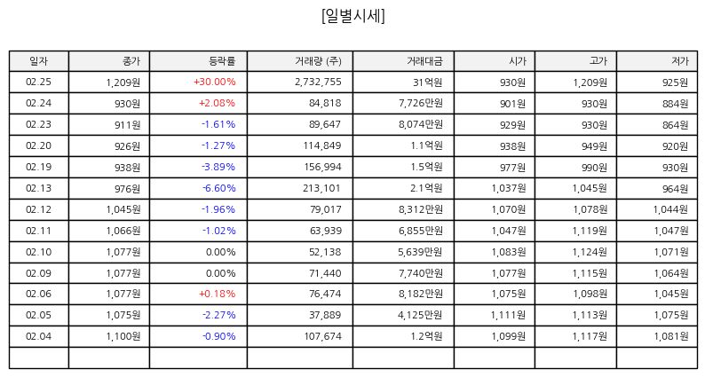 ▷ 오늘 주가는 시가 대비 큰 폭의 갭 상승으로 출발한 뒤 장중 조정 없이 상승폭을 확대했다. 거래량은 최근 평균 대비 크게 증가해 단기 자금 유입이 집중된 모습이었다. 상한가 부근에서 매수 대기 물량이 유지되며 종가까지 강세가 이어졌다는 점은 긍정적 신호로 해석된다. 다만 단기 과열 구간에 진입한 만큼 다음 거래일에는 갭 하락 또는 변동성 확대 가능성도 염두에 둘 필요가 있다.