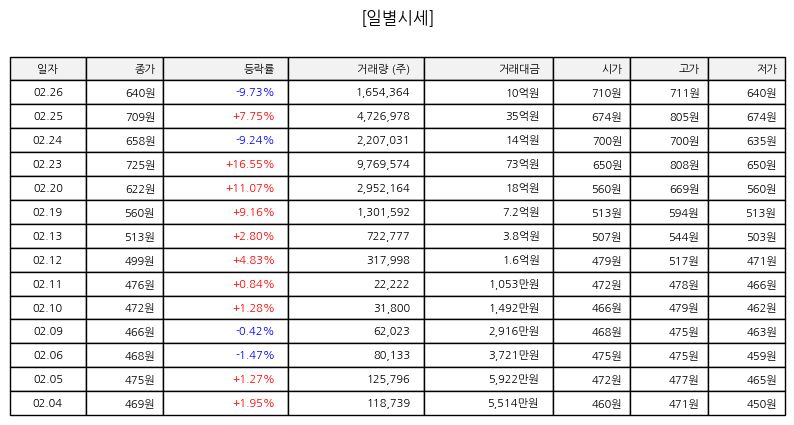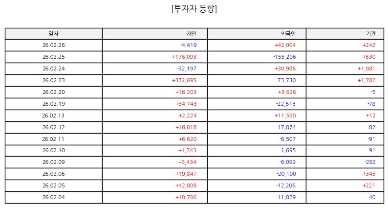 ▷ 금일 주가는 하락 출발 이후 장중 낙폭을 확대하며 약세 흐름을 이어갔다. 오전 한때 저가 매수세가 유입되며 낙폭을 일부 축소했으나 오후 들어 다시 매도 물량이 증가하며 종가는 장중 저점 부근에서 형성됐다. 이동평균선 하향 이탈 여부와 거래량 증가가 동반된 점은 단기 부담 요인으로 해석된다. 다만 과매도 구간 진입 시 기술적 반등 가능성도 열려 있어 다음 거래일 수급 변화가 중요하다.