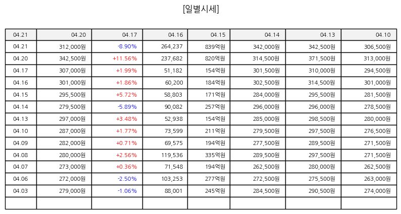 ▷ 오늘 종가 하락 마감 등락률 큰 폭 하락 기록 장 초반 약세 시작 이후 반등 시도 있었으나 매도세 우위 지속 거래량 증가 동반한 하락으로 투자심리 위축 확인