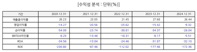 펀더멘털 측면에서는 2024년 연간 실적에서 매출은 전년과 유사하게 유지됐으나 순손실이 줄어드는 등 일부 개선이 관측되었다. 하지만 순손실 폭이 여전히 존재하고 있어 수익성 회복을 위한 추가적인 사업적 전환이 필요한 상황이다.