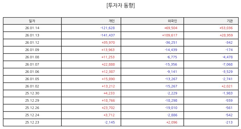 ▷ 금일 주가는 장 초반 보합권에서 출발한 이후 제한적인 범위 내에서 오르내림을 반복했다. 뚜렷한 급등이나 급락 없이 마감 흐름을 형성했으며 투자자들은 업황과 실적 가시성에 대한 추가 신호를 기다리는 모습이 두드러졌다.