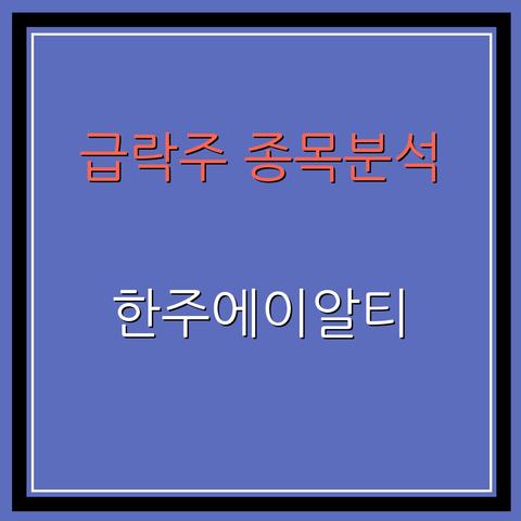 급락주 종목분석 : 한주에이알티 (058450) : 급락 흐름 속 변동성 확대 배경 분석
